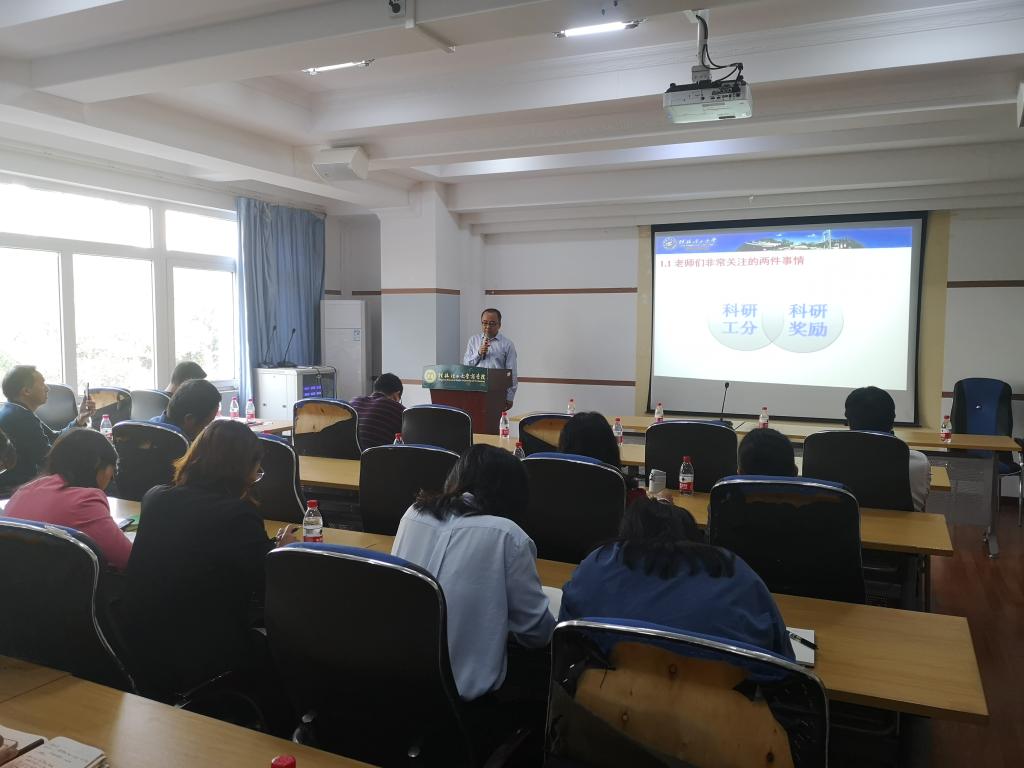 最后,科技处副处长李雷向全体教职工做了申报国家基金、社科基金以及社科研究的相关政策解读。