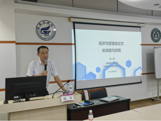 9月28日上午,山西财经大学国际贸易学院副院长、《山西财经大学学报》栏目责编刘军教授,应邀到我院作题为“经济与管理类论文的选题与投稿”的学术讲座。学院教师和研究生代表共50余人参加讲座,承办单位、我院国际经济系叶存军主任主持讲座。