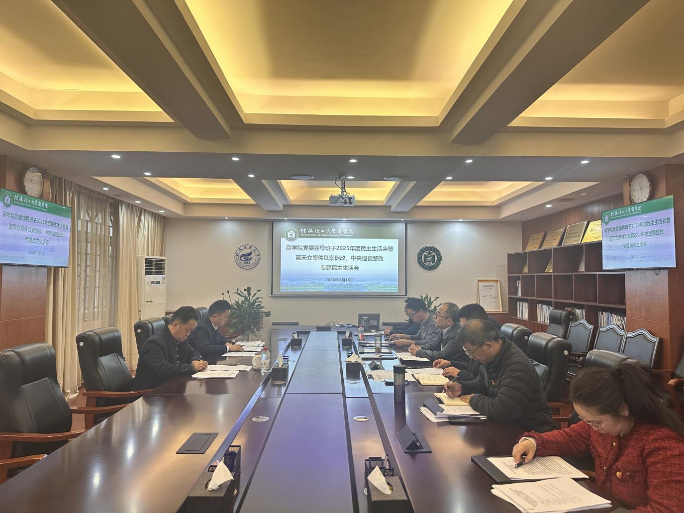 根据中央、自治区和学校的部署要求,1月16日,学院在屏风校区7206会议室召开党委领导班子2025年度民主生活会暨蓝天立案件以案促改、中央巡视整改专题民主生活会。学校党委常委、副校长曾繁荣出席会议并作点评指导,学校党委督导组同志到会督导,学院全体党员领导班子成员参加会议。会议由学院党委书记王璐主持。