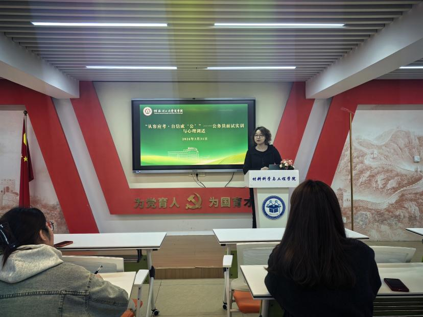 为扎实推进心理育人工作,深化一站式社区建设,提升学生心理素质与就业竞争力,3月31日下午,学院在屏风校区材苑一站式社区举办“从容应考·自信成‘公’”公务员面试实训与心理调适活动。活动由学院辅导员曾友薪主讲。