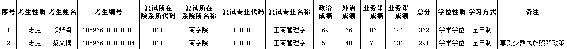 工商管理学专业2026年一志愿考生复试名单(按考生姓氏笔画排序)