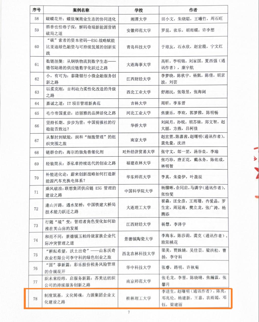 2025年9月10日,中国管理案例共享中心主办的第十六届“全国百篇优秀管理案例”评选结果公布,由我院李进生副教授和陈亮教授团队合作撰写的管理案例“制度筑基,文化铸魂:力源集团企业文化建设之路”成功入选全国“百优”管理案例,取得了管理案例研究与开发工作的重要进展,为学院“十四五”收官增添重要成果。