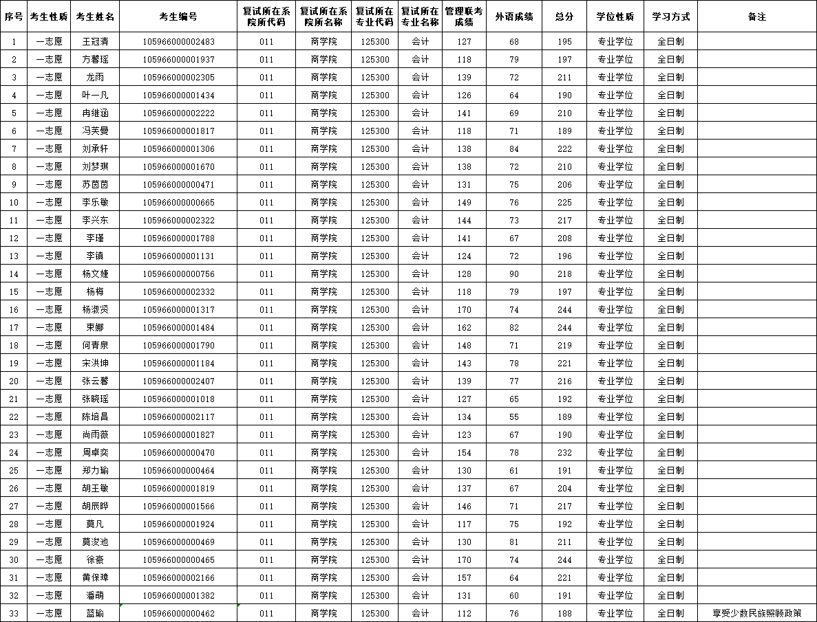 会计专业(MPAcc,代码125300)2026年一志愿考生复试名单公示